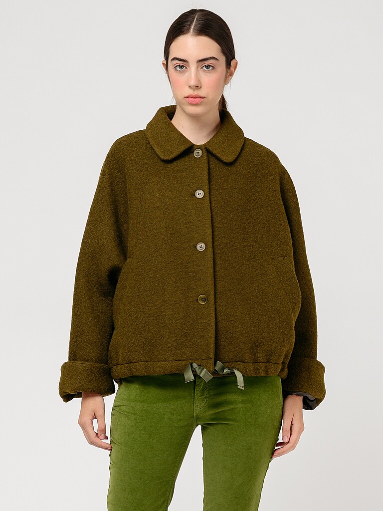 Gure kotoizko artile eroso eta iraunkorrez eginiko jaka motza. Mahuka japoniarrak, kartera-poltsikoak, kutxa-lepoa eta jareta behealdean.
